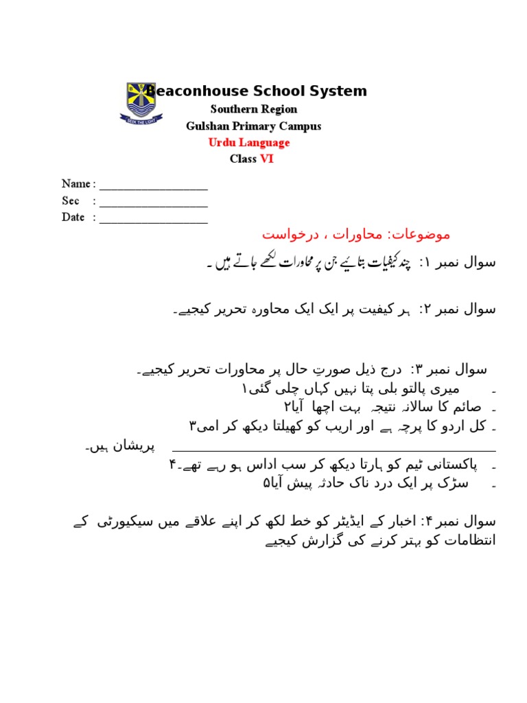 for "Urdu Worksheets For Grade 1 - Grade 2 Level Urdu Assessment Exam Paper Comprehension Creative And Grammar Section Reading Comprehension Worksheets 2nd Grade Reading Worksheets 2nd Grade Worksheets"